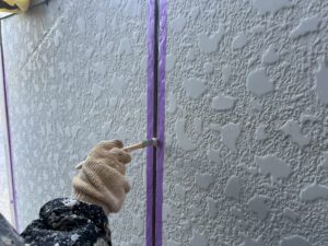 まずコーキングを打ち替えました。コーキングは様々な役割がございますが、日本は地震の多い国ということもあり、地震が発生しご自宅が揺れることがあるかもしれません。その際にコーキングがないと、揺れの衝撃が直接外壁に伝わることで外壁が割れてしまう可能性がございますので、コーキングを充填することでその衝撃を吸収するクッションとして必要不可欠なものでございます。