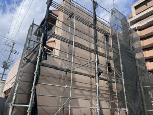 足場があり、少しわかりにくいですが機能面の向上に加え外観もきれいにすることが出来ました。